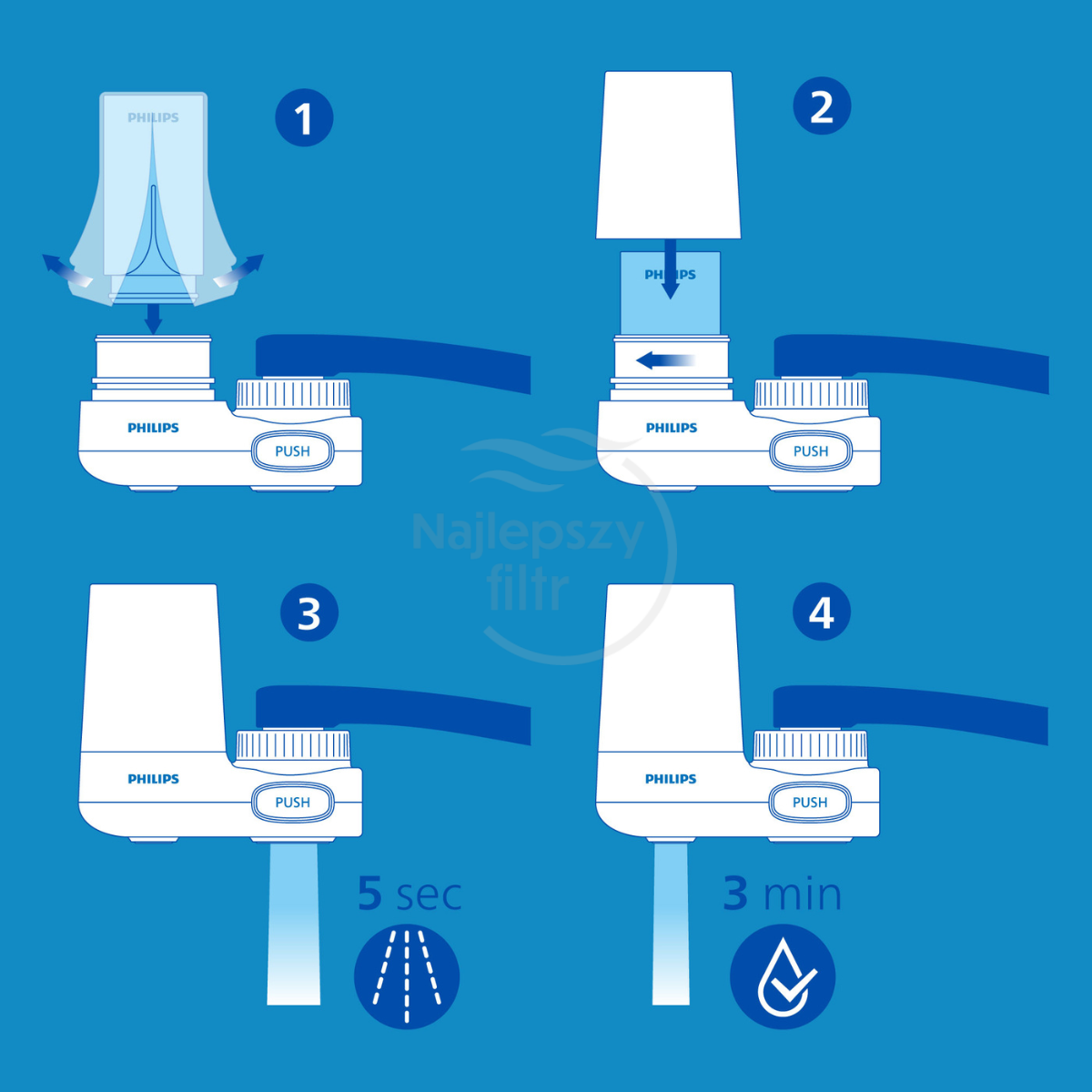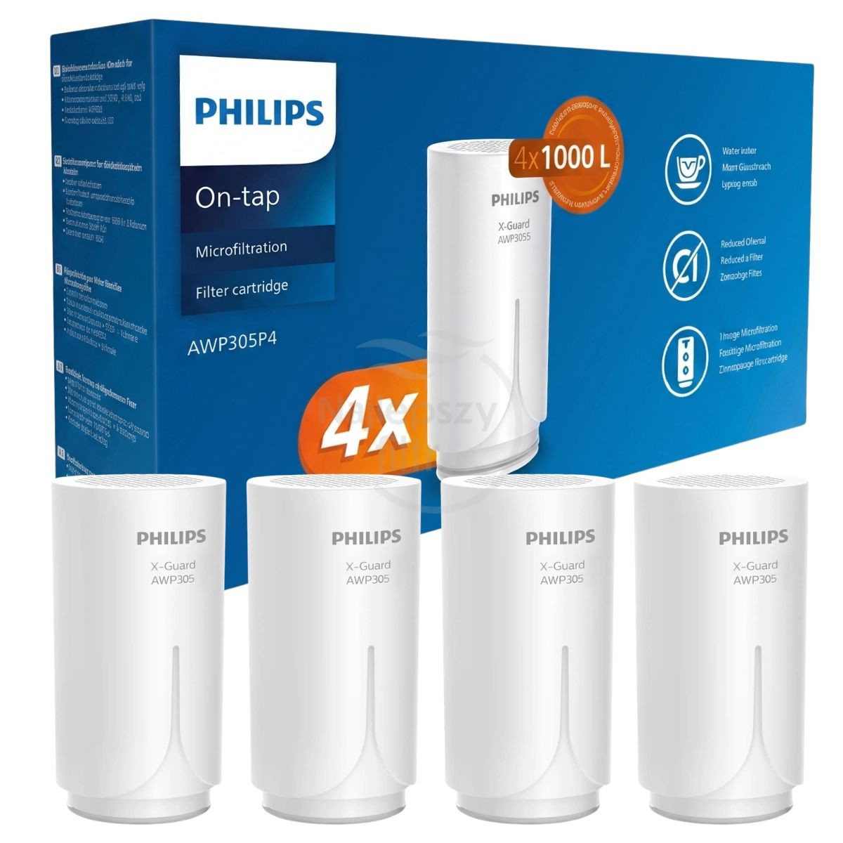 PHILIPS AWP305P4/10 to komplet 4 wymiennych wkładów filtrujących przeznaczonych do wybranych filtrów nakranowych PHILIPS.