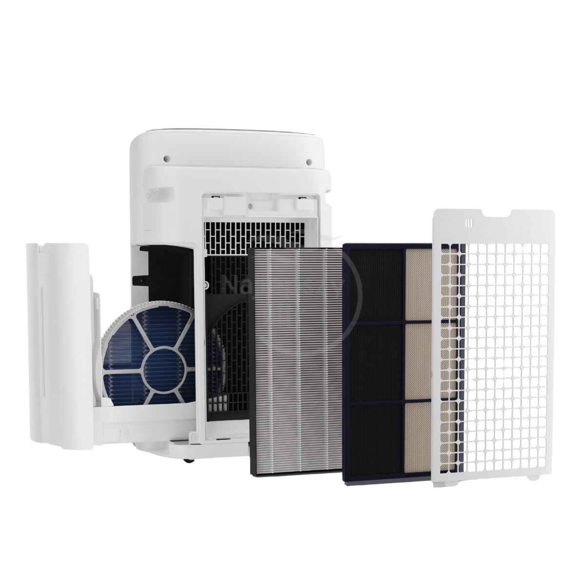 SHARP UA-KIN52E-W korzysta z rozbudowanego systemu filtracji, który usuwa większość zanieczyszczeń obecnych w powietrzu: