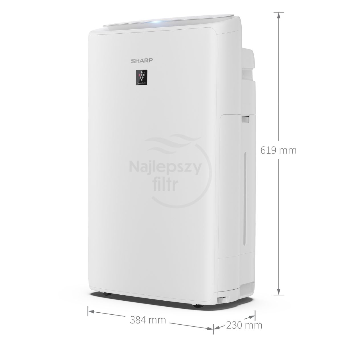 Oczyszczacz powietrza z nawilżaniem i jonizacją SHARP UA-KIN52E-W do 38m2 z aplikacją mobilną.