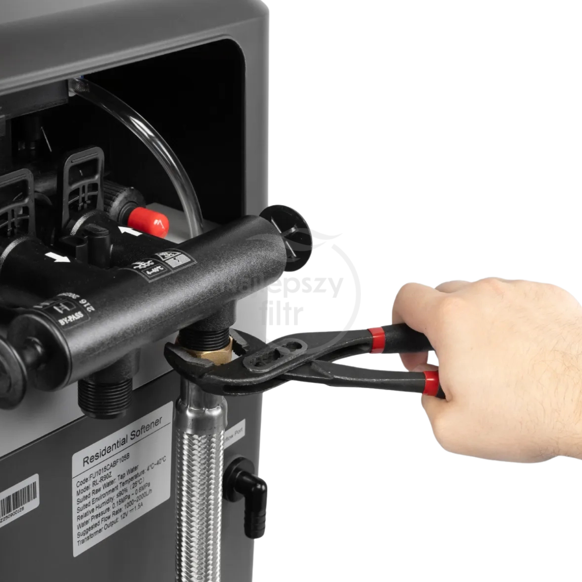 Dla zapewnienia prawidłowej pracy zalecany jest montaż filtra mechanicznego przed zmiękczaczem.