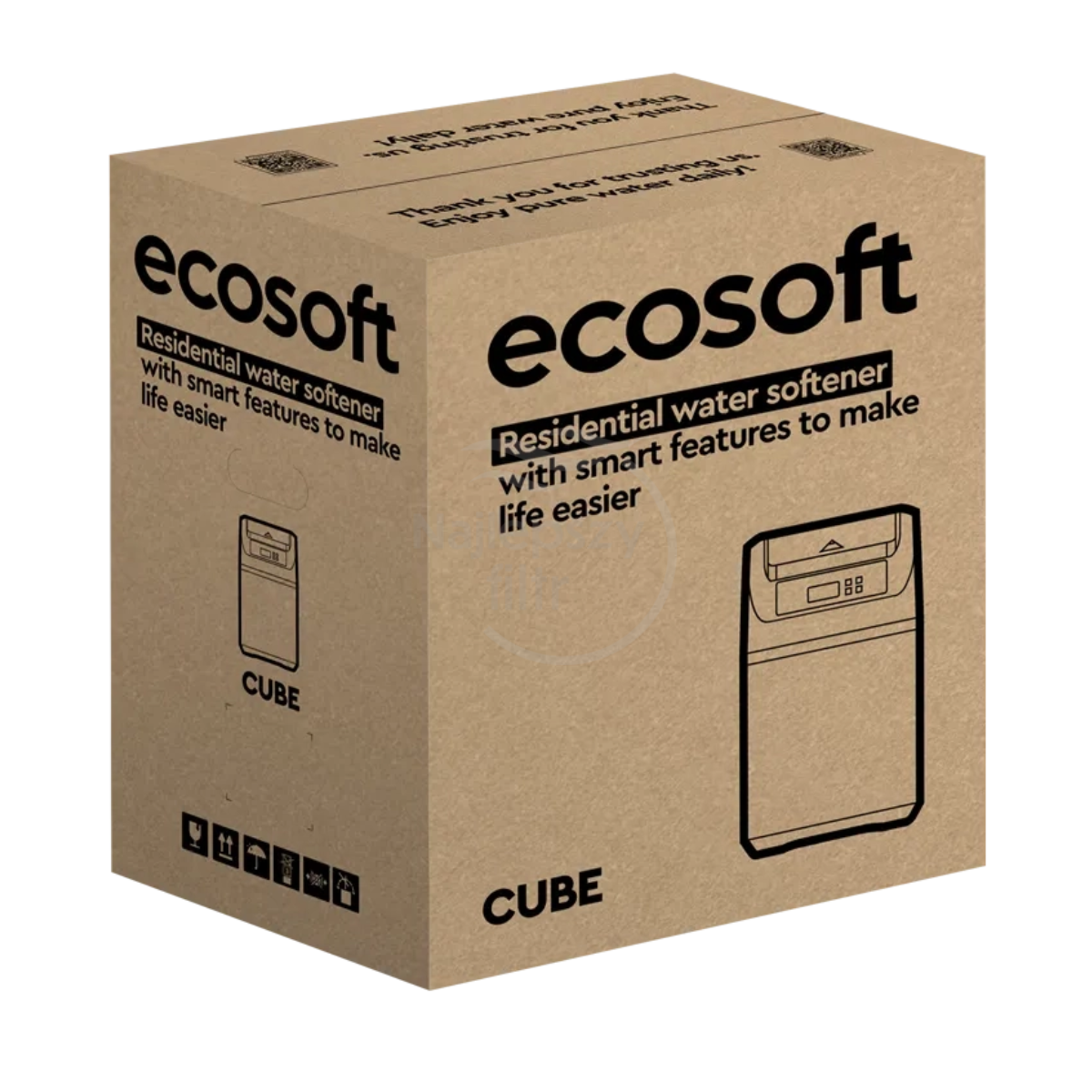 Ecosoft CUBE 100 to kompaktowy zmiękczacz wody przeznaczony do mieszkań i małych domów, w których problem twardej wody wpływa na trwałość instalacji oraz urządzeń grzewczych i AGD.